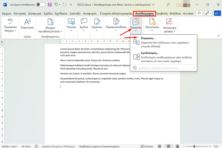 Πώς συγκρίνω δύο έγγραφα με το Word