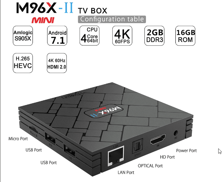 Το M96X – II είναι ένα από τα οικονομικότερα TV Box της κινέζικης αγοράς, που ωστόσο έχει καλές δυνατότητες, αν θέλουμε να μετατρέψουμε την TV σε ένα Android σύστημα οικιακής ψυχαγωγίας. Συνοδεύεται από το δικό του τηλεχειριστήριο και με όλα τα απαραίτητα καλώδια.