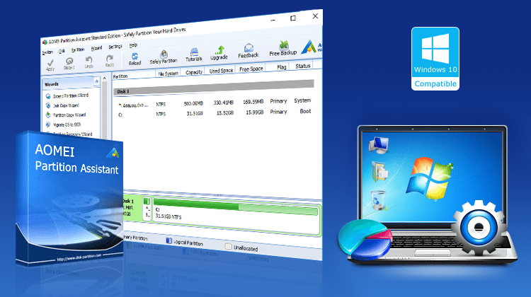 Ο Partition Assistant της AOMEI υποστηρίζει Windows XP/Vista/7/8/8.1 και 10, σε αρχιτεκτονική 32 και 64 bit.
