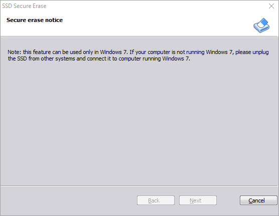 Το SSD Secure Erase είναι μία πιο απλή εκδοχή του αντίστοιχου βοηθού, και λειτουργεί επίσης μόνο σε Windows 7.