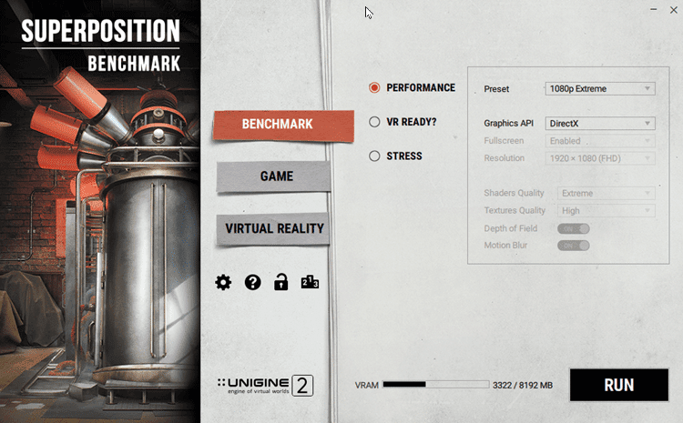 Το Unigine Superposition διαθέτει αρκετές κατηγορίες για benchmark σε 1080p.