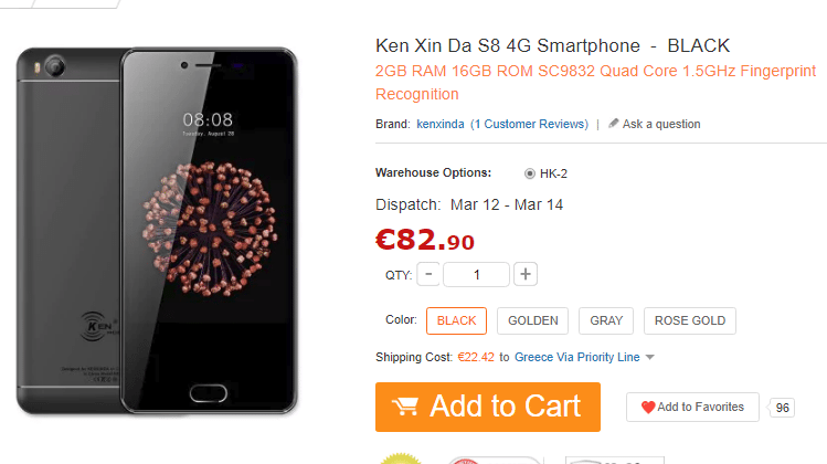 Ενώ υπάρχει δωρεάν αποστολή, ο ενδεδειγμένος τρόπος αποστολής που είναι 100% αποτελεσματικός στο να γλιτώσουμε το τελωνείο είναι η επιλογή Priority Line. Το κινητό θα έρθει στο σπίτι μας με courier.