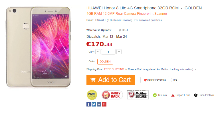 Το Huawei Honor 8 Lite μπορούμε να το αγοράσουμε από εδώ. Διατίθεται στη τιμή των €170.44.