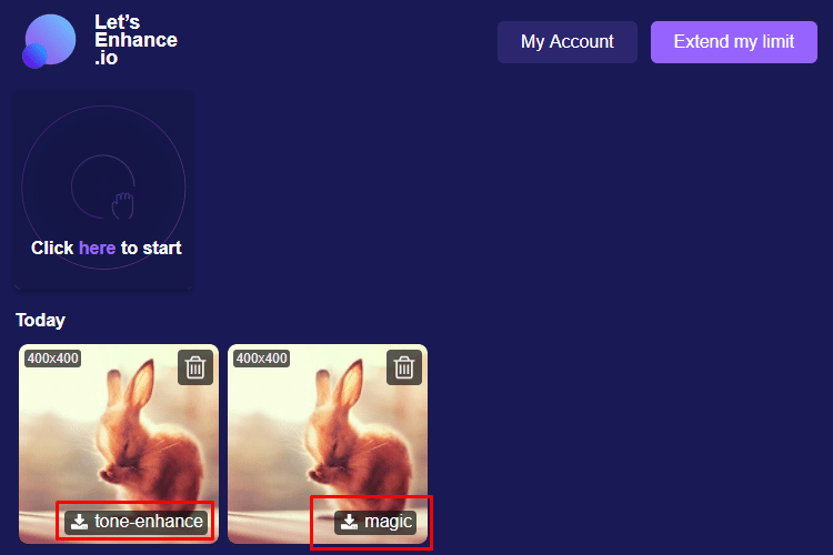 Περνώντας το ποντίκι μας πάνω από αυτές, εμφανίζεται το κουμπί “magic”, ή “tone-enhance”. Μόλις κάνουμε κλικ σε αυτό, κατεβάζουμε την τελική εικόνα στον υπολογιστή μας.