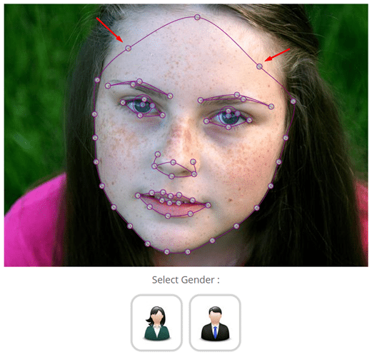 Μόλις ανεβάσουμε τη φωτογραφία μας, την αναλύει, και μας εμφανίζει το εργαλείο επιλογής προσώπου. Ουσιαστικά ελέγχουμε αν βρήκε σωστά τα μέρη του προσώπου. Αν όχι, απλά μετακινούμε το ανάλογο στοιχείο.