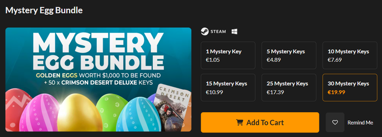 Να σημειώσουμε ότι τα κλειδιά που αγοράζουμε με το Mystery Egg Bundle είναι κρυφά. Μαθαίνουμε τι αγοράσαμε μόνο όταν η ιστοσελίδα προσθέσει τα κλειδιά στον λογαριασμό μας.