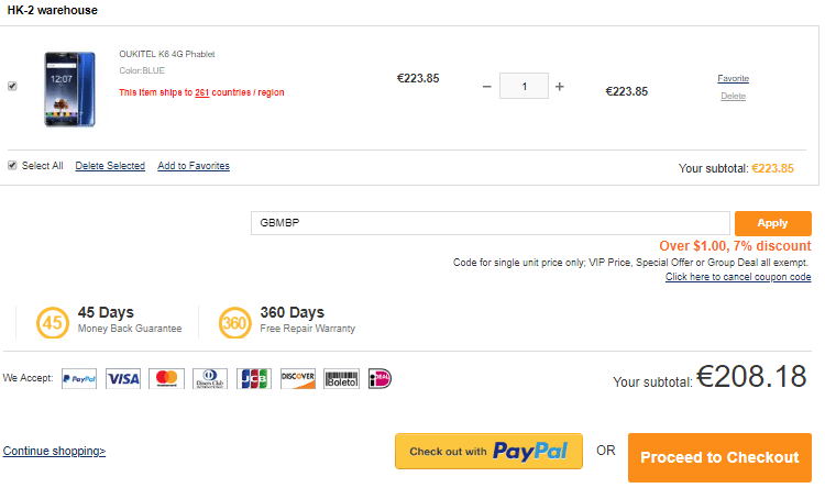 Η τιμή του του Oukitel K6 4G ανέρχεται στα €208.18. Μπορούμε να το παραγγείλουμε από εδώ με το ακόλουθο κουπόνι: