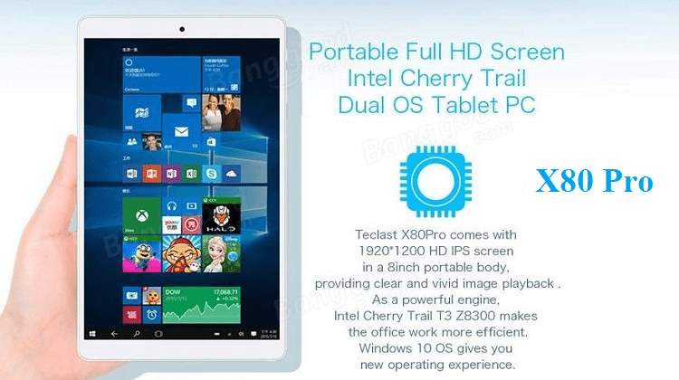 Το Teclast X80 Pro ξεχωρίζει από το λεπτό και πολύ ελαφρύ σχεδιασμό. Έχει capacitive οθόνη αφής IPS 5 σημείων στις 8.0 ίντσες, και με ανάλυση στα 1920 x 1200. H μνήμη RAM του tablet ανέρχεται στα 2GB.