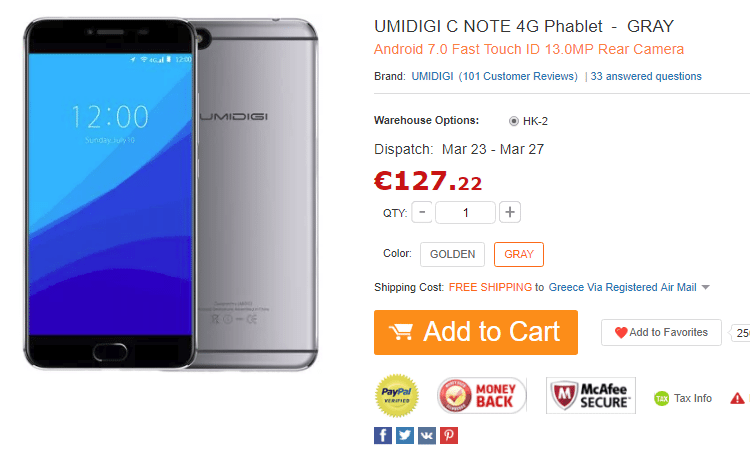 Τα σύγχρονα κινητά είναι συναρπαστικά και διαθέτουν σχεδόν τα πάντα. Κάποια είναι μικρά, άλλα είναι πλαστικά, και όλα σχεδόν έχουν δυο κάμερες. Το μεταλλικό κινητό δίνει άλλη αίσθηση στο χέρι, πόσο μάλιστα όταν συνοδεύεται από δυνατά χαρακτηριστικά. Δείτε το UMIDIGI C Note με οθόνη 5.5 ιντσών FHD, Android 7.0 και μνήμες 3GB + 32GB, σε φιλική τιμή και με Priority αποστολή χωρίς τον κίνδυνο του τελωνείου.