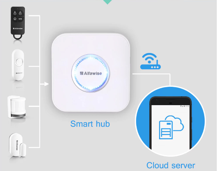 Το έξυπνο σύστημα συναγερμού αρχικά περιλαμβάνει την κεντρική μονάδα (Smart Hub Gateway). Πρόκειται για τον εγκέφαλο του έξυπνου συστήματος και συνδέεται απευθείας με όλες τις υπόλοιπες μονάδες που υπάρχουν στην συσκευασία.