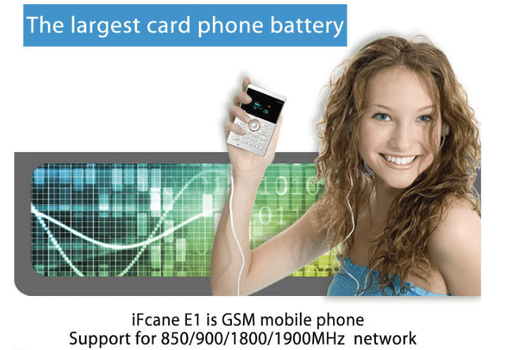 Το Mini Card Phone διακρίνεται βέβαια για την πολύ χαμηλή τιμή και έχει βάρος μόλις στα 35 γραμμάρια. Πρόκειται για μίνι κινητό που συνδέεται αποκλειστικά και μόνο με GSM στα 850 / 900 / 1800 / 1900MHz.