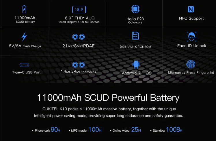 Πολλοί από εμάς, ίσως θέλουμε ένα πανίσχυρο κινητό χωρίς να πληρώσουμε πολλά. Δείτε την προσφορά στο νέο μεταλλικό Oukitel K10 4G με θηριώδη μπαταρία 11000mAh με ταχεία φόρτιση, Android Nougat και 6GB + 64GB μνήμες, μεγάλη οθόνη 6.0 ιντσών 18:9 υψηλής ανάλυσης 2160 x 1080, μαζί με τέσσερις κάμερες, Type-C, Face ID και πολύ δυνατή CPU, σε προσιτή τιμή για λίγες ημέρες, και με Priority αποστολή χωρίς τελωνείο.