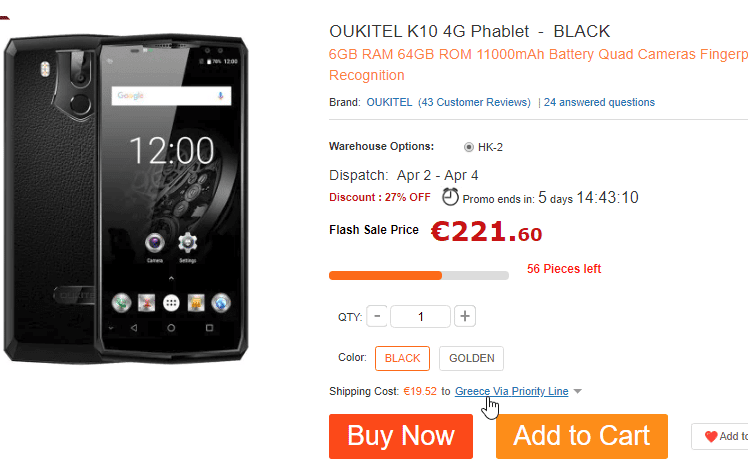 Δεν υπάρχουν ελληνικά καταστήματα που να διαθέτουν το OUKITEL K10. Στην ελληνική αγορά διατίθενται σε περιορισμένη γκάμα μερικά κατώτερα smartphones της εταιρείας σε πολύ υψηλότερες τιμές.