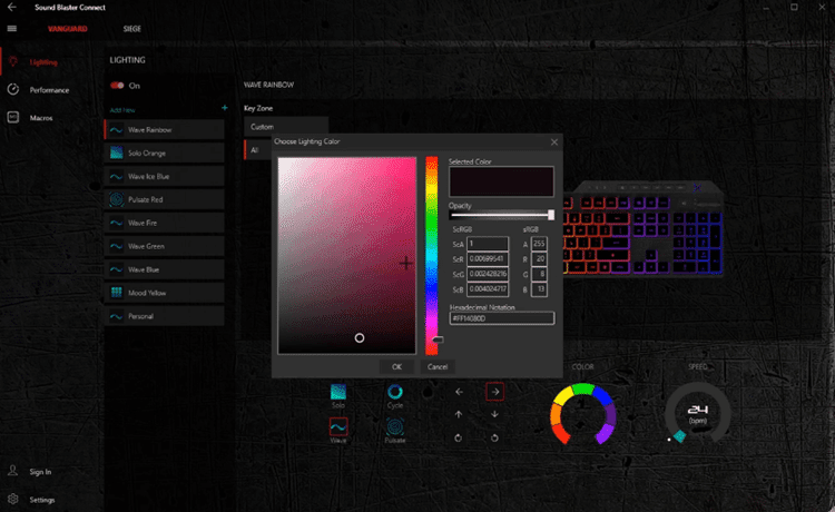 Με το software μπορούμε να ρυθμίσουμε τα πλαϊνά κουμπιά, αλλά και να αλλάξουμε χρώμα στον φωτισμό. Φυσικά, μπορούμε να συνδυάσουμε το χρώμα με το πληκτρολόγιο αν τα έχουμε και τα δύο.