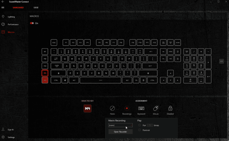Από το πρόγραμμα ορίζουμε επίσης τις λειτουργίες των macro κουμπιών, που βρίσκονται στην αριστερή πλευρά του Vanguard.