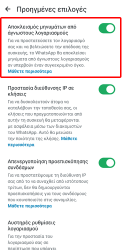 Τέλος, η εφαρμογή για Android συσκευές προσφέρει ένα επιπλέον επίπεδο ασφάλειας, αρκεί να ενεργοποιήσουμε τον διακόπτη δίπλα στο “Αποκλεισμός μηνυμάτων από άγνωστους λογαριασμούς”.