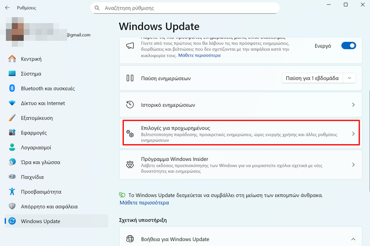 Στη συνέχεια, εντοπίζουμε και πατάμε το “Προηγμένες επιλογές”.