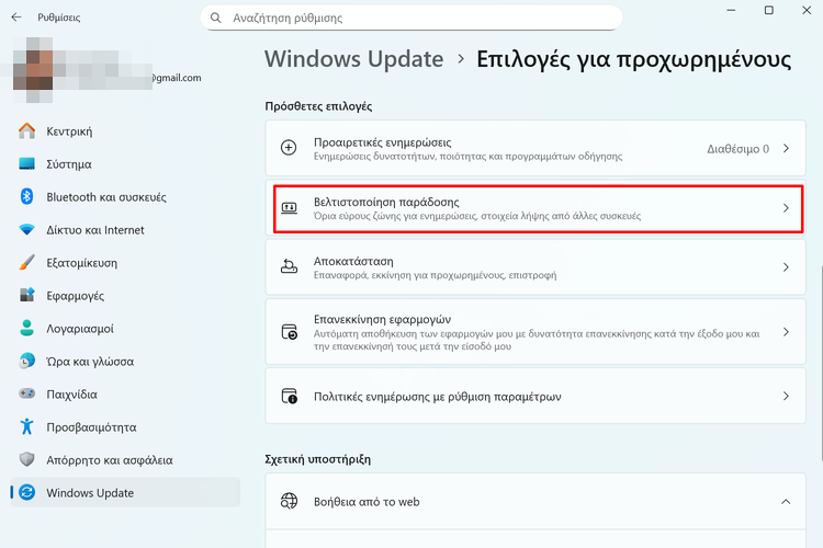 Στη συνέχεια, εντοπίζουμε και πατάμε το “Βελτιστοποίηση παράδοσης”.