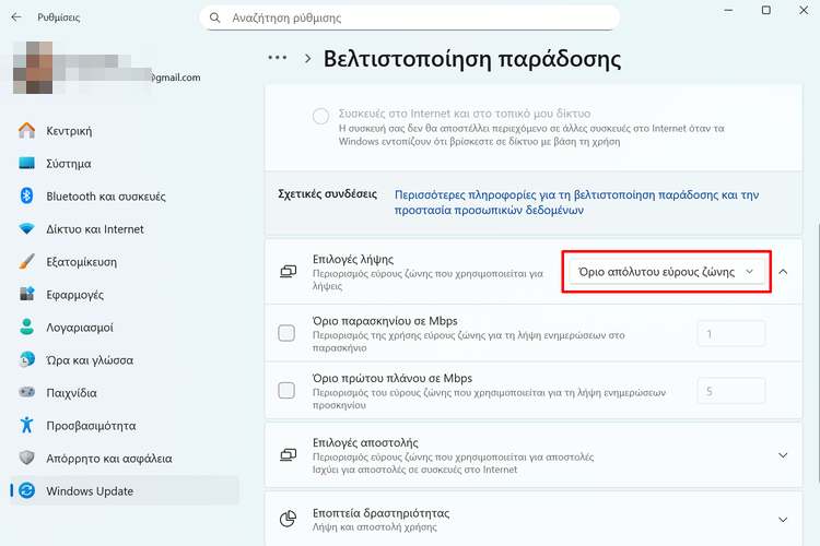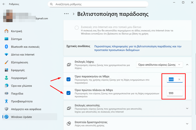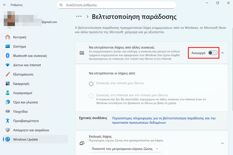Συχνά, ο ένοχος δεν είναι ο πάροχος ή το ρούτερ μας, αλλά μια εσωτερική ρύθμιση των Windows που ονομάζεται Βελτιστοποίηση Παράδοσης. Αυτή η λειτουργία θεωρητικά βοηθά στη λήψη πακέτων από άλλους υπολογιστές, αλλά στην πράξη συχνά περιορίζει το διαθέσιμο εύρος ζώνης.