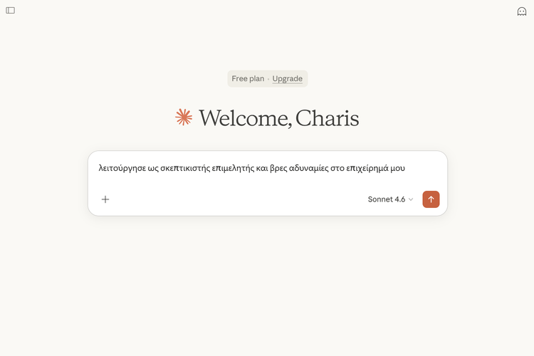 Έπειτα, αναθέτουμε στο Claude έναν συγκεκριμένο ρόλο για πιο ακριβείς απαντήσεις, όπως “λειτούργησε ως σκεπτικιστής επιμελητής και βρες αδυναμίες στο επιχείρημά μου”.