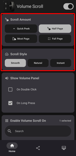 Με την εφαρμογή Volume Scroll, μπορούμε να αντικαταστήσουμε το swipe στην οθόνη με το πάτημα των φυσικών κουμπιών της συσκευής. Αυτό το χαρακτηριστικό είναι ιδανικό για όσους χρησιμοποιούμε e-readers ή θέλουμε να περιηγούμαστε στον browser και το TikTok χωρίς να καλύπτουμε την οθόνη με το δάχτυλό μας.