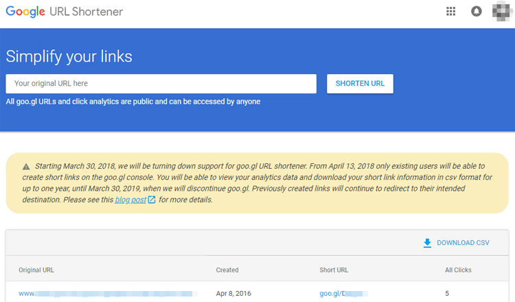Μέχρι τις 30 Μαρτίου του 2019, μπορούμε να δημιουργούμε νέους συνδέσμους με το goo.gl. Παρ’ όλα αυτά, δεν υπάρχει η δυνατότητα εγγραφής, και μόνο όσοι είναι ήδη χρήστες μπορούν να διαχειρίζονται τους συνδέσμους τους.
