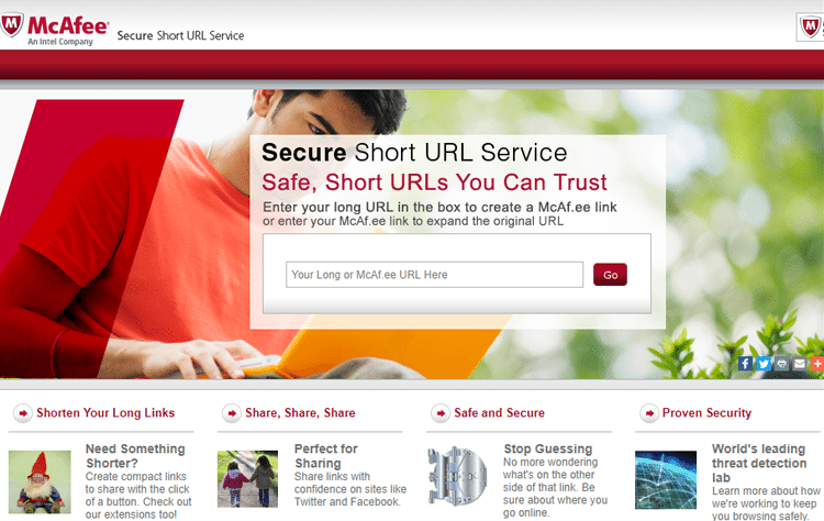 Η McAfee είναι μία από τις γνωστότερες εταιρείες ασφαλείας στον κόσμο. Εκτός από προγράμματα antivirus και internet security, διαθέτει και σελίδα όπου κάνουμε συντόμευση συνδέσμων.
