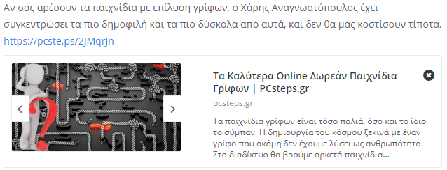 Όντως, αν πηγαίναμε να κάνουμε tweet το σύνδεσμο ενός άρθρου, θα βρισκόμασταν αντιμέτωποι με κάτι τέτοιο: “https://www.pcsteps.gr/247368-πώς-να-επαναφέρω-χαρακτηριστικά-των-windows/”.