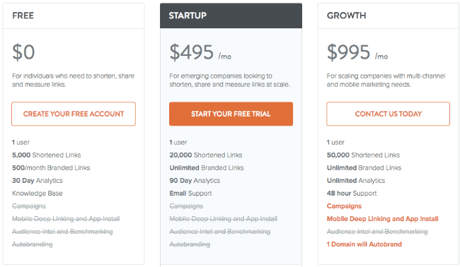 Από παλαιότερους τιμοκαταλόγους, φαίνεται το κόστος να ξεκινάει από τα 500 δολάρια το μήνα. Αν όμως η επιχείρησή μας χρειάζεται περισσότερους από 5000 συντομευμένους συνδέσμους και 500 συνδέσμους με δικό μας domain το μήνα, αυτό είναι το κόστος.