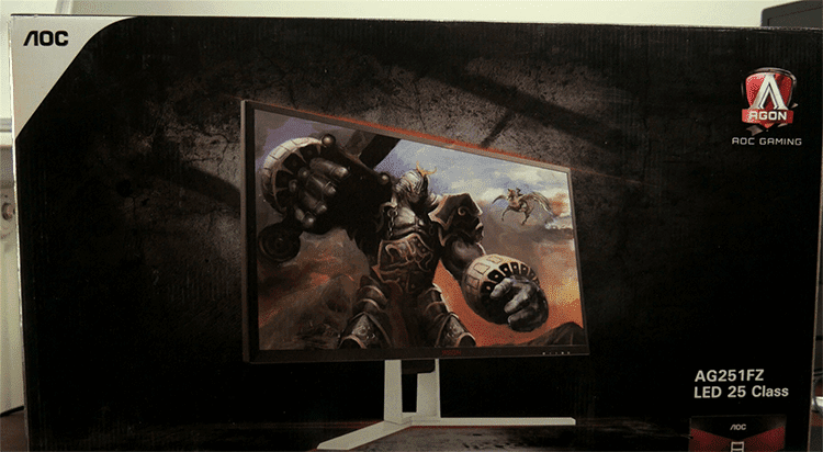 Η AG251FZ έρχεται σε μια αρκετά στιβαρή συσκευασία, με την οθόνη να εικονίζεται στο εξωτερικό. Με μια πρώτη ματιά, φαίνεται απευθείας ότι πρόκειται για gaming monitor.