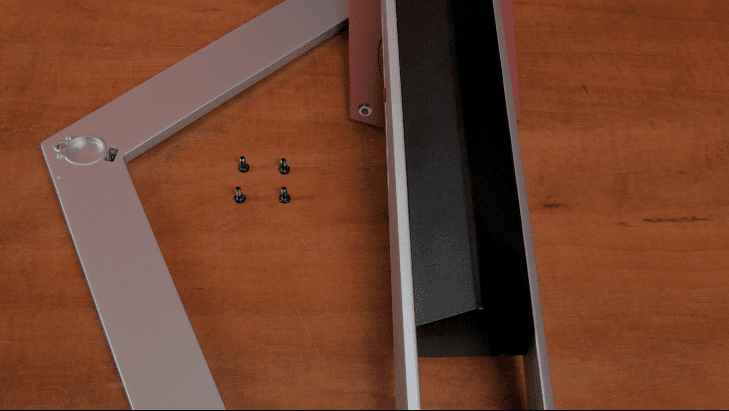 Η βάση της AOC AG251FZ είναι μεταλλική και σχηματίζει αμβλεία γωνία, που μπορεί να παρομοιαστεί με βέλος.