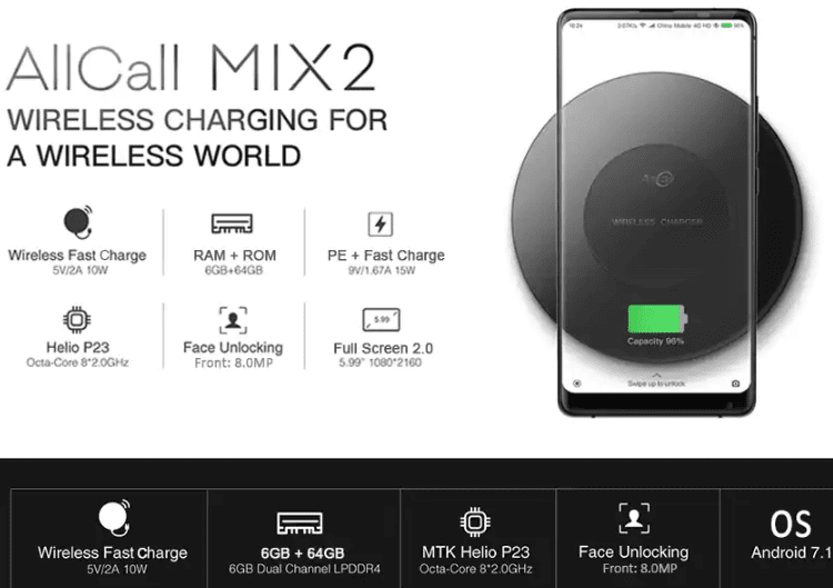 Υπάρχουν κινέζικα smartphone που είναι ιδανικά για όσους θέλουν να έχουν ένα πολύ δυνατό κινητό για να κάνουν όλες τις δουλειές, χωρίς να πληρώσουν πολλά χρήματα. Δείτε το νέο ALLCALL MIX 2 4G με οθόνη 5,99 ιντσών στα 2160 x 1080, μεγάλες μνήμες 6GB + 64GB, οκταπύρηνο επεξεργαστή 2.0GHz, ασύρματη φόρτιση, ραδιόφωνο FM και Android 7.1, σε φιλική τιμή, και με φθηνή Priority αποστολή στα €2.63 χωρίς τελωνείο.