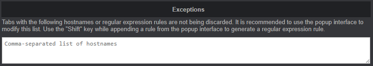 Επιπλέον, μπορούμε να ορίσουμε εξαιρέσεις, ώστε το πρόσθετο να μην “κοιμίζει” καρτέλες που παίζουν μουσική, έχουν μη αποθηκευμένο κείμενο, είναι καρφιτσωμένες, κτλ.