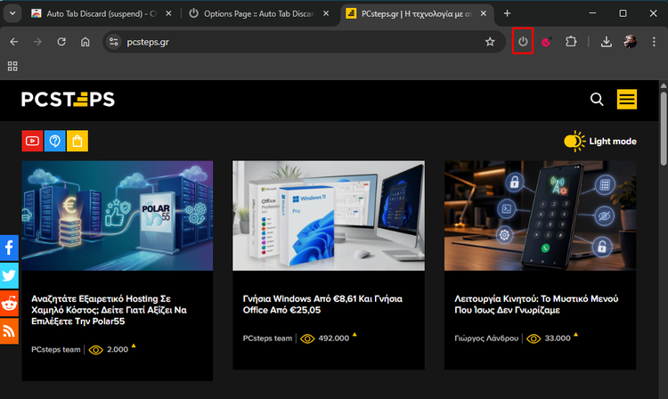 Το δωρεάν πρόσθετο “Auto Tab Discard” προσφέρει μια πολύ πιο επιθετική και παραμετροποιήσιμη λύση. Μπορεί να “κοιμίζει” αυτόματα τις ανενεργές καρτέλες βάσει χρόνου, απελευθερώνοντας πόρους προληπτικά, χωρίς όμως να κλείνει τα site.