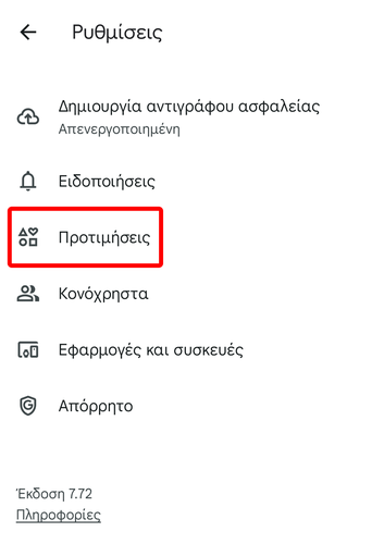 Έπειτα, πατάμε “Προτιμήσεις”.