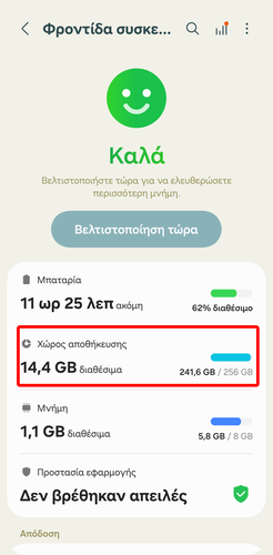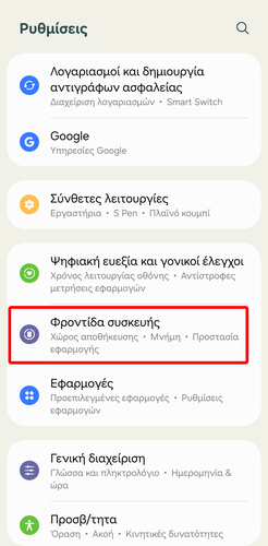 Αρχικά, ανοίγουμε τις “Ρυθμίσεις” και πηγαίνουμε στη “Φροντίδα συσκευής”.
