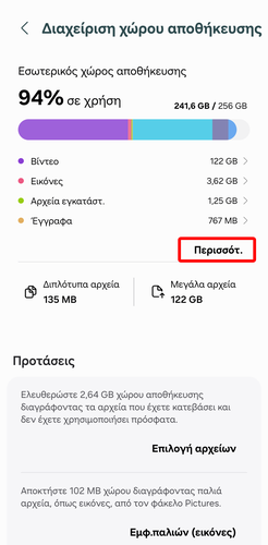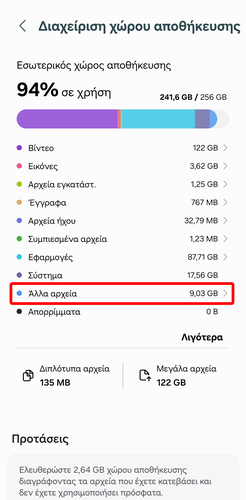Στο Android υπάρχει η κρυφή κατηγορία “Άλλα αρχεία” που περιλαμβάνει αντίγραφα ασφαλείας από επεξεργασμένες φωτογραφίες, προσωρινά αρχεία συστήματος, και άλλα. Αυτά τα αρχεία καταλαμβάνουν, πιθανώς, άσκοπα χώρο.