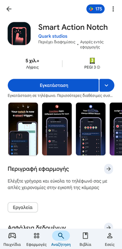 Μπορούμε να αντιστοιχίσουμε διαφορετικές λειτουργίες για απλό πάτημα, διπλό πάτημα ή παρατεταμένη πίεση πάνω στην κάμερα. Αρχικά, κατεβάζουμε και εγκαθιστούμε την εφαρμογή “Smart Action Notch” από το Google Play Store.