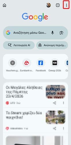 Αρχικά, ανοίγουμε τον Chrome και πατάμε τις τρεις τελείες.