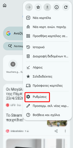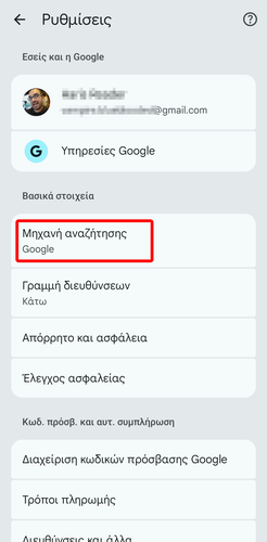 Μετά, επιστρέφουμε στις “Ρυθμίσεις” και πατάμε “Μηχανή αναζήτησης”.