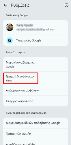 Έπειτα, πατάμε “Γραμμή διευθύνσεων”.