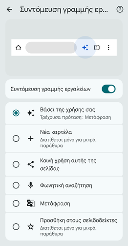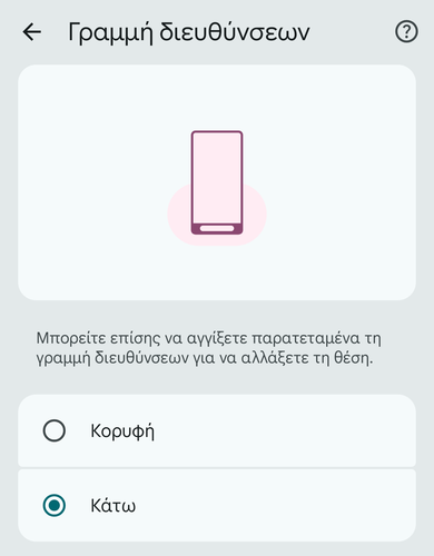 Στη συνέχεια, επιλέγουμε το “Κάτω”, για να μετακινήσουμε τη γραμμή διευθύνσεων στο κάτω μέρος της οθόνης, ώστε να είναι πιο εύκολα προσβάσιμη όταν κρατάμε τη συσκευή με ένα χέρι.