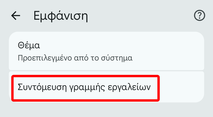 Στη συνέχεια, πατάμε “Συντόμευση γραμμής εργαλείων”.