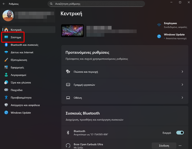 Αρχικά, ανοίγουμε τις “Ρυθμίσεις” και πατάμε “Σύστημα”.
