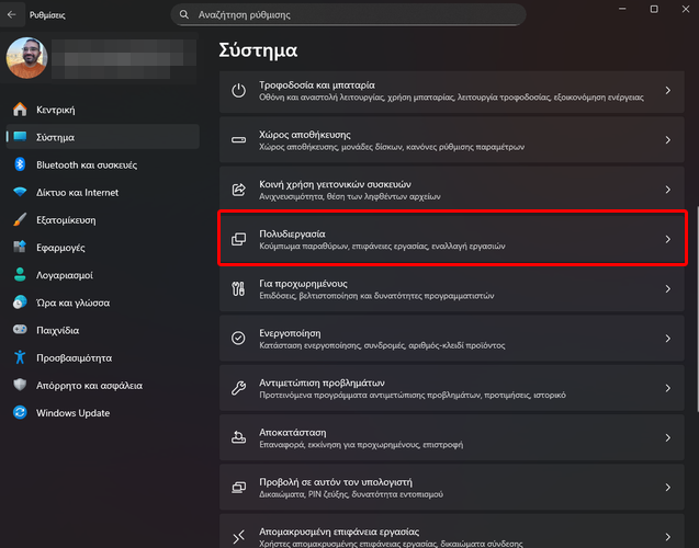 Έπειτα, κάνουμε κλικ στο “Πολυδιεργασία”.