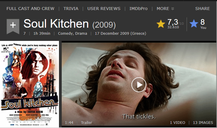 Έχουμε τη δυνατότητα να απολαύσουμε το Soul Kitchen με συγχρονισμένους ελληνικούς υπότιτλους σε PC ή σε TV Box, μέσα από το Stremio, είτε της εφαρμογής των Windows, είτε του Android και iOS. Επιπλέον μπορούμε και από το GamatoTV.