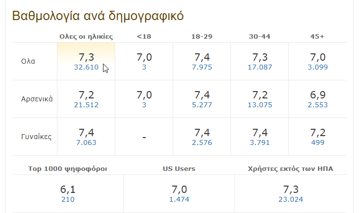 Η βαθμολογία των 32.610 θεατών: