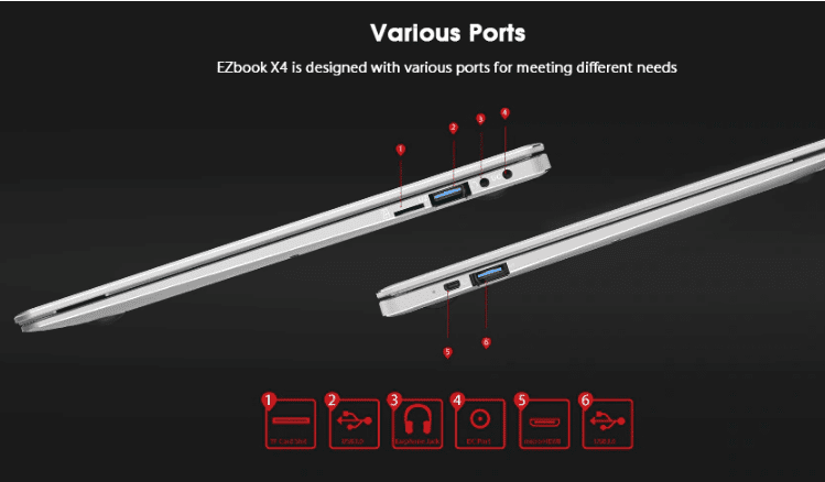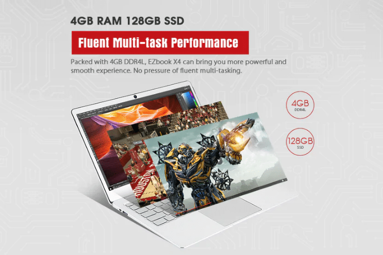 Το EZbook X4 διαθέτει τον τετραπύρηνο επεξεργαστή Intel Gemini Lake N4100 με clockspeed στα 1.10GHz και turbo Speed 2.40GHz. Ο φορητός έχει δυο θύρες USB 3.0 και υποστηρίζει Dual Band 2.4GHz / 5.0GHz WiFi.