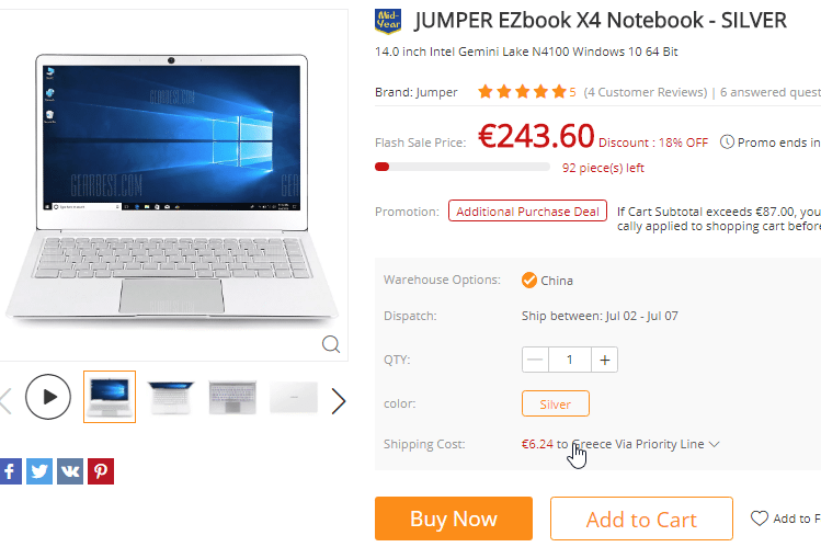 Η τιμή του Jumper EZbook X4 θα βρίσκεται σε πτώση για ελάχιστες ώρες στα €243.60. Μπορούμε να το αγοράσουμε από εδώ.