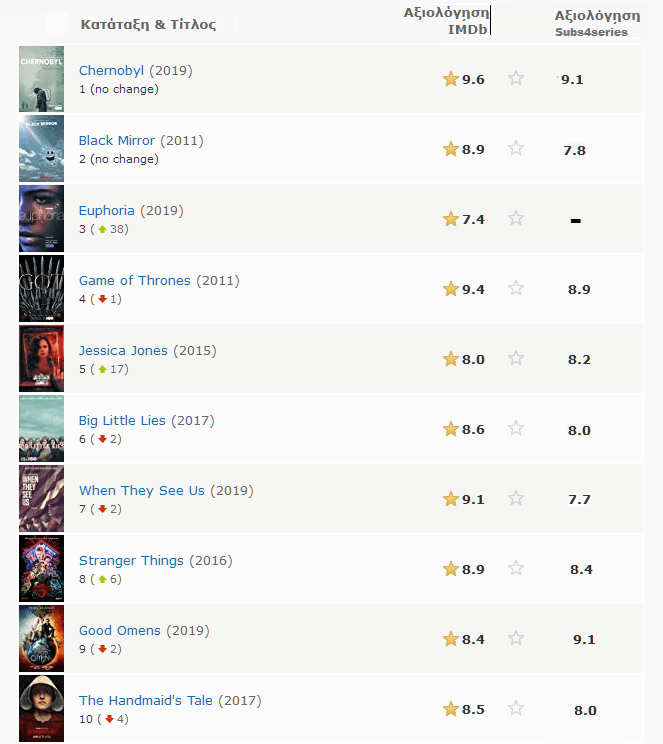 Αντίστοιχα, έχουμε και τις τηλεοπτικές σειρές που συγκέντρωσαν τις περισσότερες προτιμήσεις.